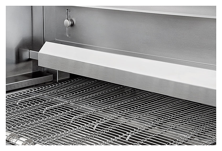 Туннели, конвейер и смотровые окошки. Корпус выполнен из нержавеющей стали.