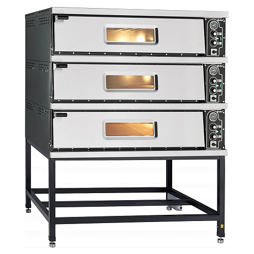 Печь может быть установлена на подставку ПП-6. Облицовка выполнена из крашеного металла, дверка и рамка камеры из эмалированного, а жарочный шкаф из оцинкованного листа толщиной 1,5 мм. В камере установлены поды из жаропрочного камня толщиной 15 мм.