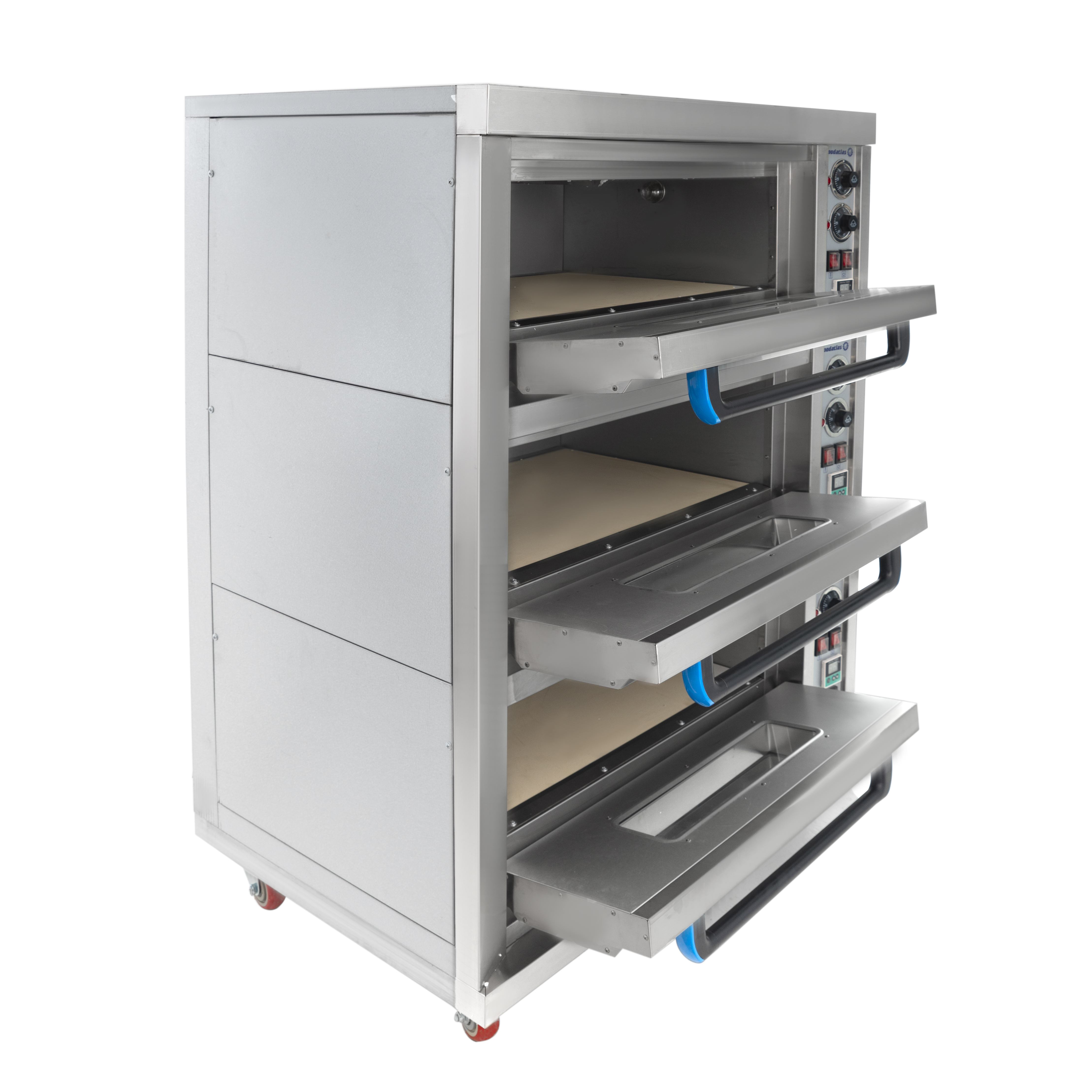 В пекарных камерах печей HEO создается равномерное тепловое поле, обеспечивающее равномерную выпечку или однородную термообработку продуктов в неподвижной воздушной среде. Благодаря простоте конструкции и универсальности, печи HEO нашли широкое применение: