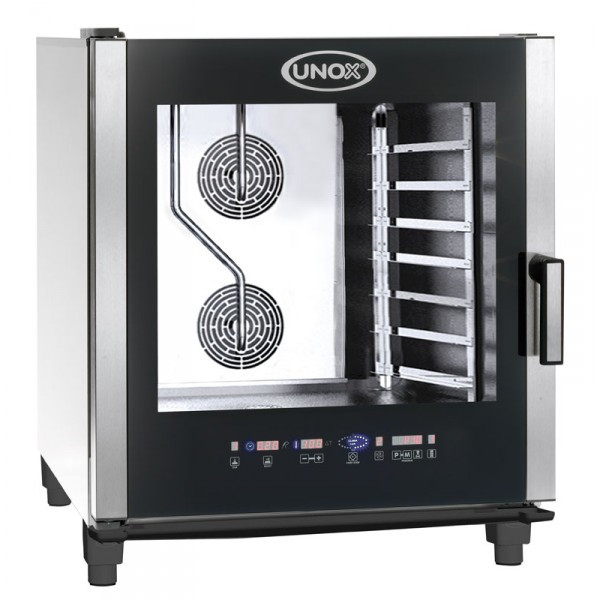 В данной модели, конвекционной электрической печи UNOX XVC 505 E, предусмотрена инжекторная система образования пара. Рабочая камера рассчитана на семь гастроёмкостей GN1/1.