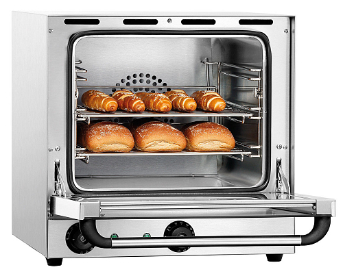 Печь конвекционная Bartscher AT 110 – это оптимальный вариант для выпечки изделий из теста, а также для приготовления мясных, рыбных или овощных блюд. Благодаря использованию профессионального оборудования процесс выпечки существенно ускоряется, что дает возможность оптимизировать работу профессиональной кухни. Для конвекционной печи AT110 min температура составляет 0 °С. А max температура составляет 300 °С °С. Оптимальный размер гастроемкости – GN 1/2-65. При этом заданное расстояние между направляющими для гастроемкостей составляет – 70 мм. Еще одно преимущество оборудования заключается в том, что конвекционная печь AT110 дает возможность выпекать хлебобулочные и кондитерские изделия отменного качества, при этом равномерность пропекания обеспечивается за счет равномерной циркуляции горячего воздуха в камере. Дополнительно есть наличие конвекции. При этом стоит отметить, что при приготовлении качество блюд остается на высоком уровне. Исполнение корпуса и рабочей камеры конвекционной печи соответствуют всем стандартам. В предлагаемой модели материал корпуса – нержавеющая сталь. Заявленный цвет корпуса – серебристый. При этом материал рабочей камеры - нержавеющая сталь.