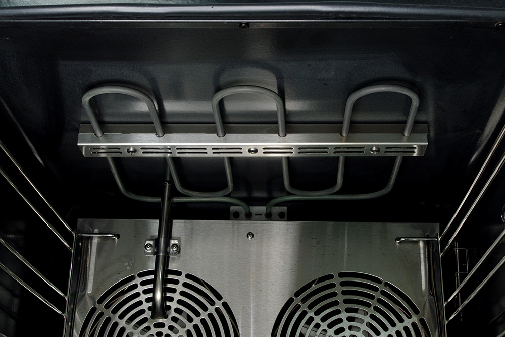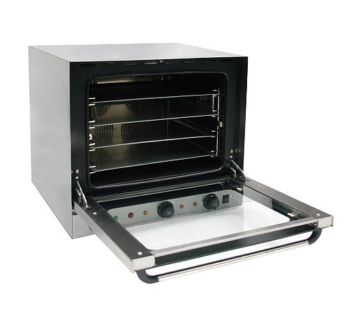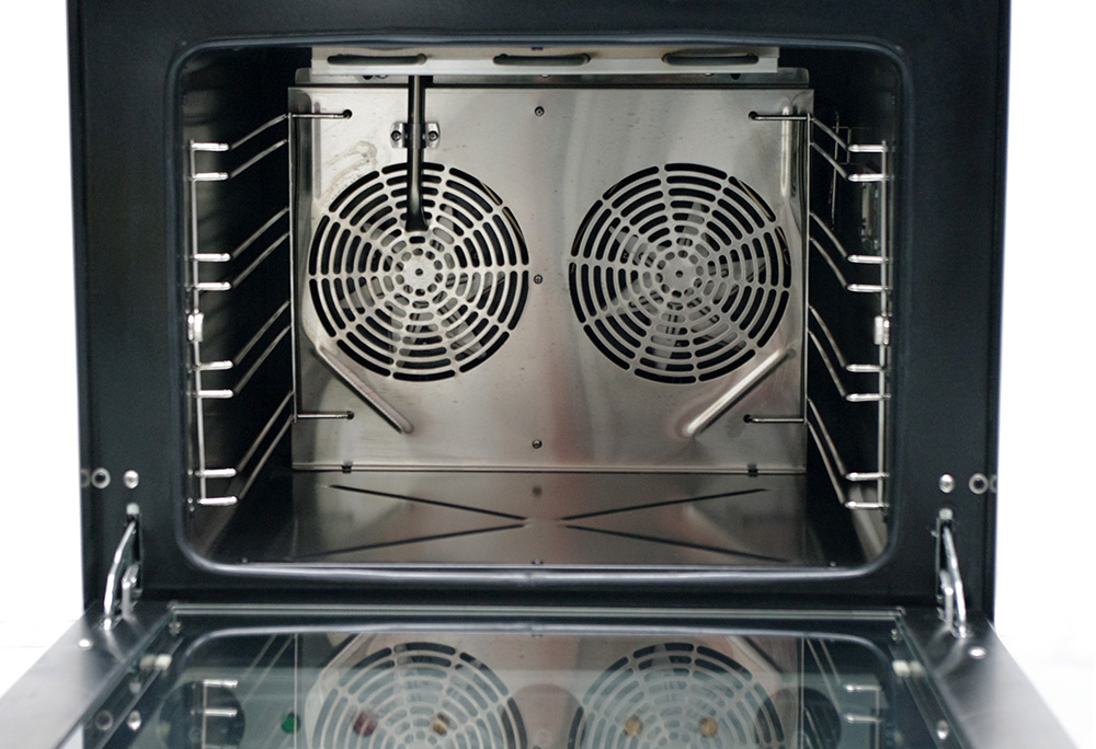 Профессиональная конвекционная печь оснащена, механической панелью управления, защитным термостатом, подсветкой, герметичной откидной дверцей с двойным остеклением и дверными петлями с автодоводчиком.