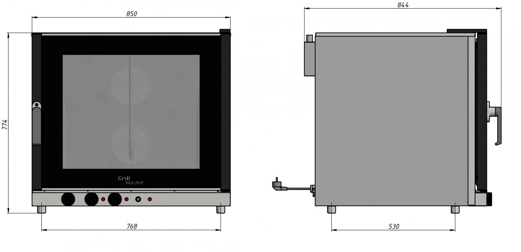Печь конвекционная Grill Master ФЖШ/3 (22226) предназначена для выпекания или разогрева кондитерских и хлебобулочных изделий, готовых блюд, замороженных или предварительно выдержанных в расстоечном шкафу заготовок из теста на предприятиях общественного питания и торговли.