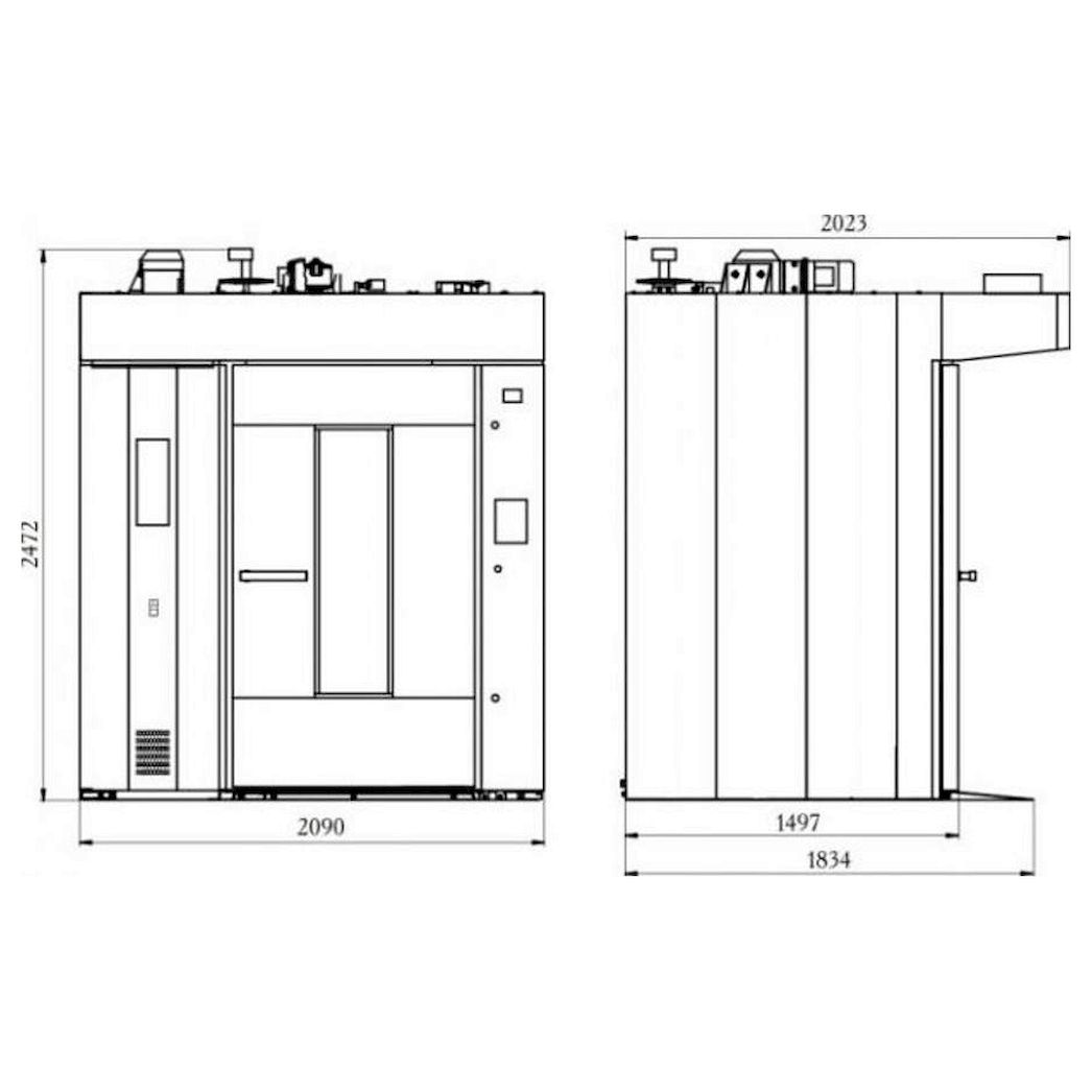 • Верхний привод вращения стеллажной тележки, низкий порог пекарной камеры, короткий пандус, верхний узел фиксации тележки позволяют избежать встряски тестовых заготовок при закатывании стеллажной тележки, исключают ее смещение во время выпечки