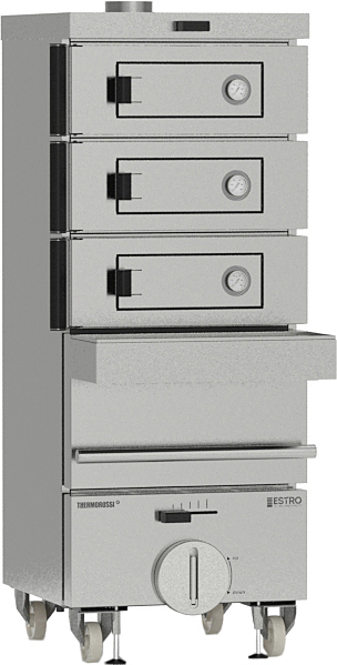 Угольная гриль-печь ESTRO PRO 3+ используется на предприятиях общественного питания и торговли для приготовления любых блюд на древесном или угольном топливе. Модель оснащена лотком для загрузки топлива и сбора золы на телескопических направляющих. Камеры выполнены из чугуна, решетки для гриля - из нержавеющей стали.