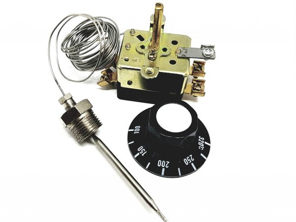 Переключатель 004.12 Т32М-04 (100-320C) для плиты электр. кух. типа ЭП, шкафа жарочного мод. ШЖЭ. Для жарочных шкафов, духовки электроплиты. 25А 250В, двухполюсный, длина капилляра 2,5м