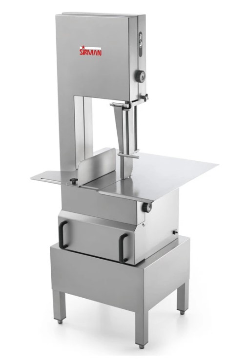 Пила для резки мяса SIRMAN SO 2400 НЕРЖ.СТАЛЬ 3 ФАЗН применяется для распиливания пищевой продукции. По сравнению с нарубкой мяса при помощи топора, обработка мяса благодаря использованию этого профессионального оборудования удобнее, проще и безопаснее. При этом длина рабочего стола составляет 710 мм, а ширина рабочего стола – 510 мм. Удобство использования обеспечивается и тем, что длина полотна ленточной пилы составляет 2400 мм. В предлагаемой ленточной пиле скорость ленточного полотна составляет 700 об/мин. Использованный при изготовлении ленточной пилы материал корпуса – нержавеющая сталь, что делает применение такого профессионального оборудования надежным и долговечным. Кроме того, следует отметить, что такое оборудование просто в обращении, система управления – электромеханическая.