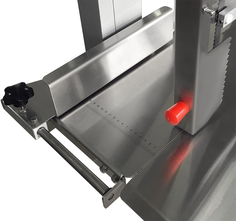Модель оснащена безопасным толкателем и запасным полотном. Стол выполнен из нержавеющей стали, а корпус выполнен из окрашенного металла.