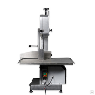 Благодаря высокой скорости вращения пильного полотна, пила выполняет аккуратный и ровный срез даже при резке продукта с костью и жилами. Есть регулировка натяжения полотна и толщины резки, механический толкатель для безопасной работы.