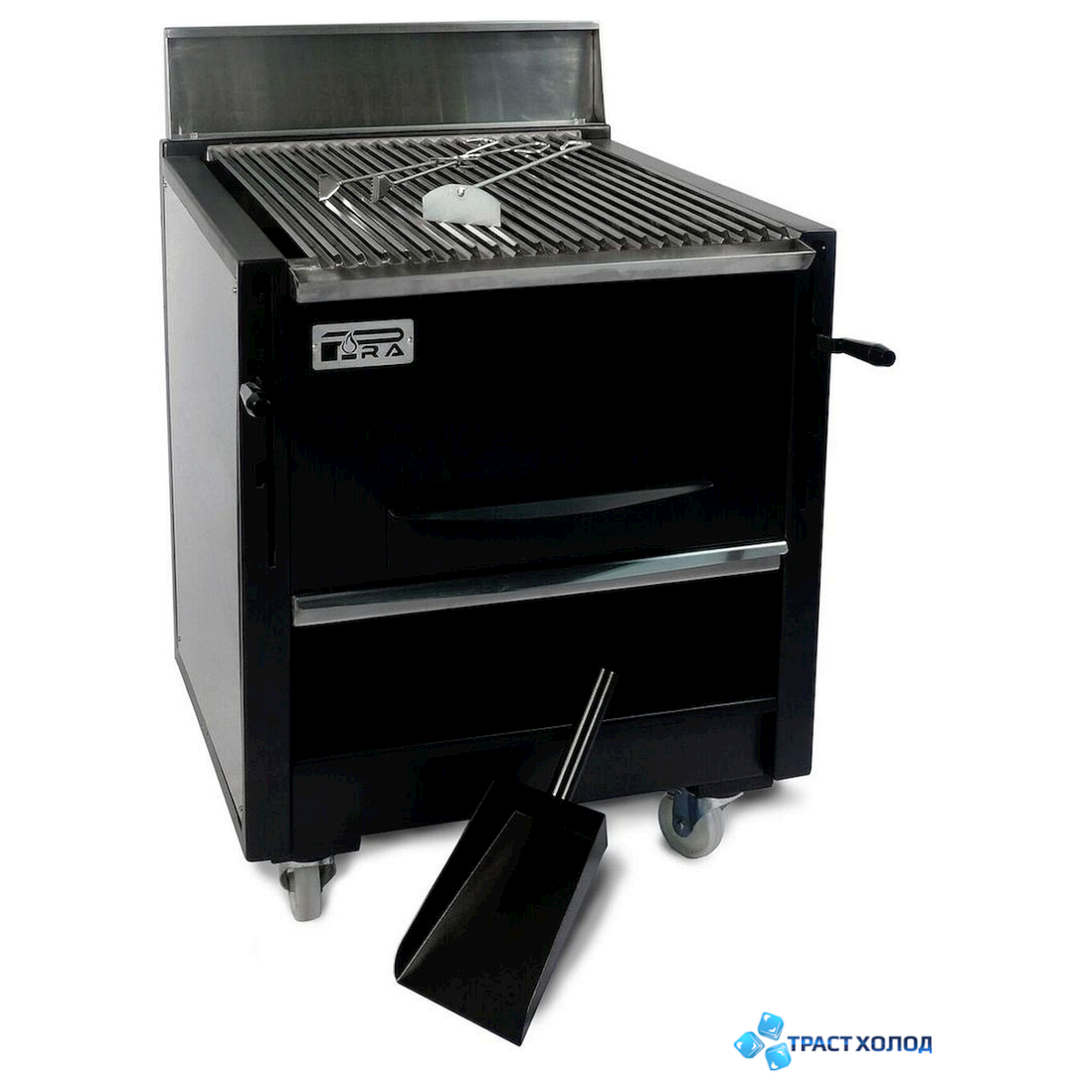 Гриль барбекю PIRA BBQ-10 работает на твердом топливе и может обслуживать до 100 посадочных мест, в комплектацию входит, решетка из чугуна, щипцы, лопатка, кочерга.