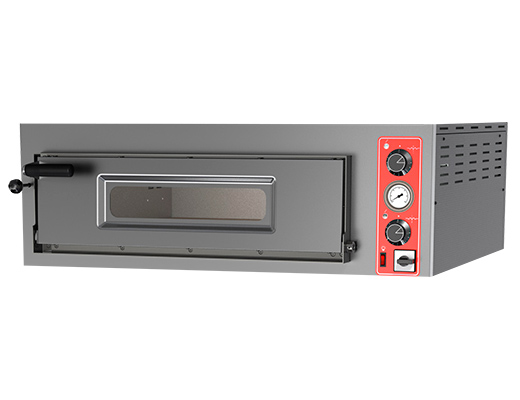 Удобное механическое управление в виде терморегуляторов и включателя/выключателя освещения, располагаются на передней панели из нержавеющей стали, корпус - из крашенной стали. Камера дополнительно теплоизолированная, под в нижней части из огнеупорного камня толщиной четырнадцать миллиметров, распределит тепло по всей площади камеры, обеспечивая равномерное выпекание продукта.