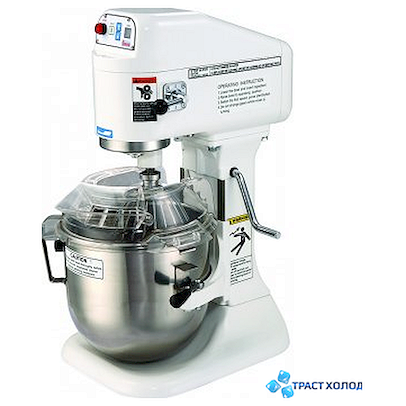 Планетарный миксер Gastrorag QF-800A-B используется для замеса некрутого теста (бисквитного, дрожжевого, заварного), а также фарша, муссов, пюре, кремов, соусов в различных заведениях общественного питания и на торговых предприятиях. Данный аппарат имеет три скорости (132/234/421 об/мин), в комплект входит съёмная дежа с защитной крышкой и три мешалки (венчик, крюк, плоский битер).