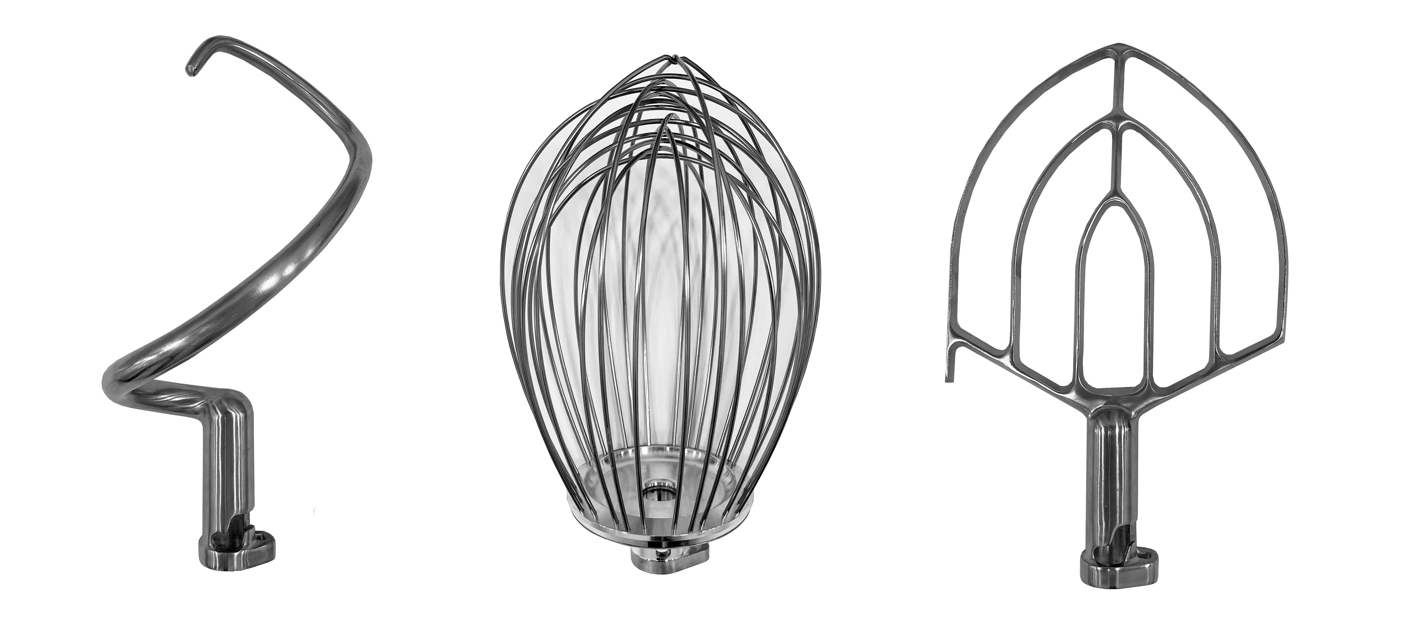 • Отличительная особенность этого планетарного миксера заключается в использовании нержавеющей стали для изготовления лопатки и крюка, в то время как в большинстве аналогичных моделей эти элементы производятся из силумина.