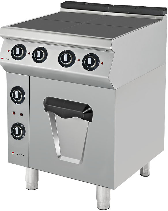 Плита электрическая 4 конфорочная 900 серии TATRA TER.89O предназначена для приготовления различных блюд в наплитной посуде. Данная модель оснащена статическим электрическим жарочным шкафом и ее можно использовать как самостоятельно, так и в составе технологической линии.