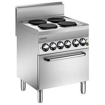 Форма конфорок – круглые. Предусмотренное количество нагревательных элементов – 4. Предусмотренный в предлагаемой вашему вниманию электрической плите тип духовки – электрическая, что дает возможность еще больше расширить перечень блюд, которые можно приготовить с использованием данного оборудования. Дополнительно есть наличие конвекции. Исполнение электрической плиты соответствует стандартам. Так, в данной модели материал корпуса – нержавеющая сталь, благодаря чему обеспечивается долговечность эксплуатации. И, что немаловажно, электрическая плита MARENO C6FEV7E проста в обращении, система управления – электромеханическая.