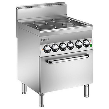 Также стоит отметить, что одно из ключевых преимуществ плит со стеклокерамической поверхностью заключается в простоте ухода за ними, так как чистка поверхности не создает никаких затруднений. Однако, при эксплуатации плиты следует уделять особое внимание тому, чтобы избежать появление нежелательных царапин и других механических повреждений. Предусмотренный в такой стеклокерамической плите тип духовки – электрическая, что позволяет еще больше расширить перечень блюд, которые можно готовить с использованием данного профессионального оборудования. Дополнительно есть наличие конвекции. Исполнение стеклокерамической плиты отвечает стандартам качества. Так, в данной модели материал корпуса – нержавеющая сталь, благодаря чему обеспечивается долговечность эксплуатации. И, что немаловажно, стеклокерамическая плита MARENO V6FEV7EP проста в обращении, система управления – электромеханическая.