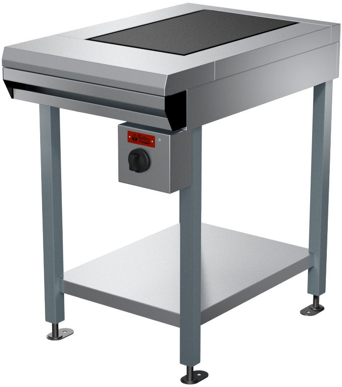 Плита электрическая ПРОММАШ ПЭ-0,17 С без жарочного шкафа используется на предприятиях общественного питания и торговли для приготовления первых, вторых и третьих блюд в наплитной посуде, а также для жарки полуфабрикатов из мяса, рыбы, овощей. Модель оснащена инвентарной полкой. Каркас изготовлен из углеродистой стали с покрытием, рабочий стол из нержавеющей стали.