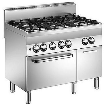 Эта газовая плита C6FG11G производства MARENO представляет собой разновидность профессионального оборудования, используемого для варения, жарения и других видов тепловой обработки продуктов питания. Без данного оборудования, обеспечивающего бесперебойную работу горячего цеха, практически невозможно представить функционирование любого заведения общественного питания. Заявленные производителем габариты газовой плиты C6FG11G: длина – 1100 мм, глубина – 650 мм, высота – 870 мм. А форма конфорок – круглые. Предусмотренное количество нагревательных элементов – 6. Предусмотренный в такой газовой плите тип духовки – газовая, что дает возможность еще больше расширить перечень блюд, которые можно приготовить с использованием такого оборудования. При этом мощность духовки составляет 5 кВт. Исполнение газовой плиты отвечает стандартам. В предлагаемой модели газовой плиты материал корпуса – нержавеющая сталь, благодаря чему обеспечивается долговечность эксплуатации. И, что немаловажно, такая газовая плита проста в обращении, система управления – механическая.