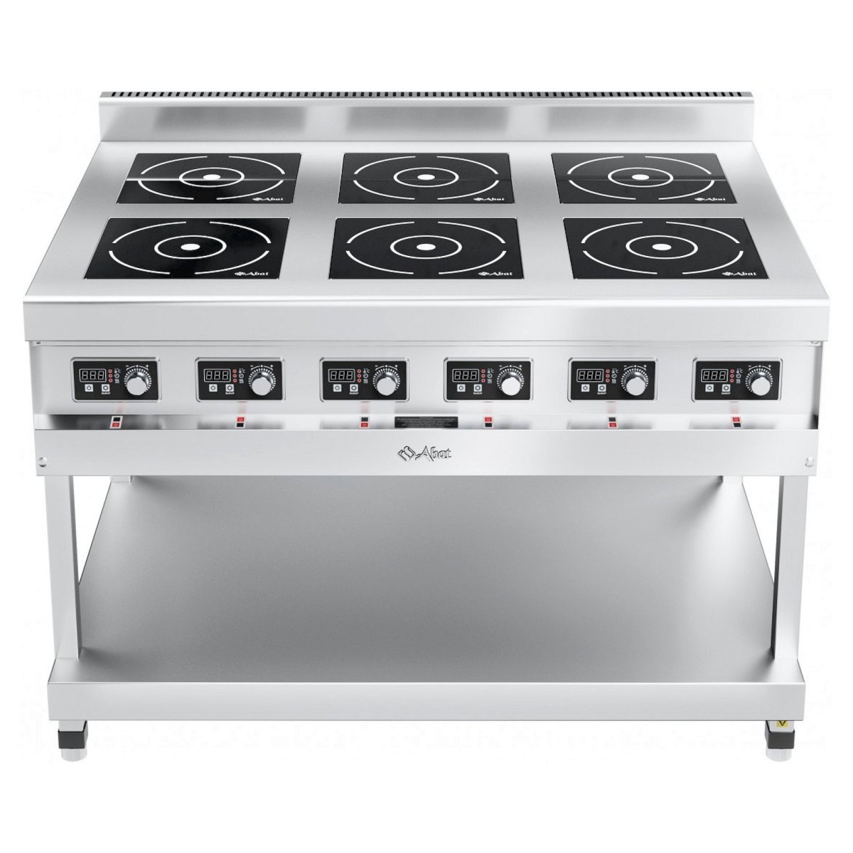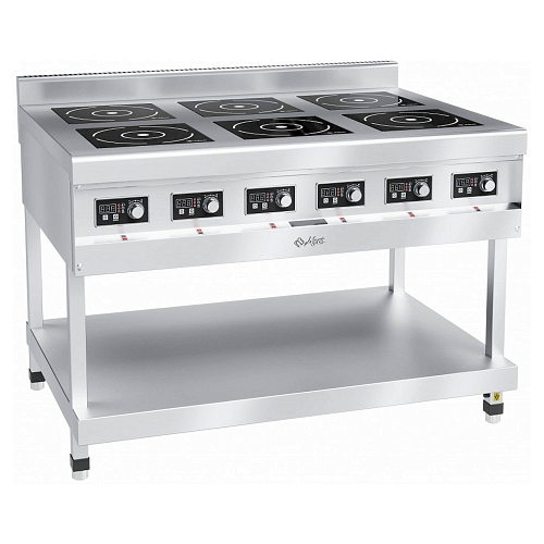 Плита индукционная Abat КИП-69П-5,0-01 применяется для приготовления первых, вторых и третьих блюд в специальной наплитной посуде на предприятиях общественного питания самостоятельно или в составе технологических линий. Может использоваться посуда из нержавеющей стали или алюминия с ферромагнитным дном, чугунная посуда. Лицевая панель, подставка с полкой и боковые стенки плит выполнены из высококачественной нержавеющей стали, рабочая поверхность - из стеклокерамики.