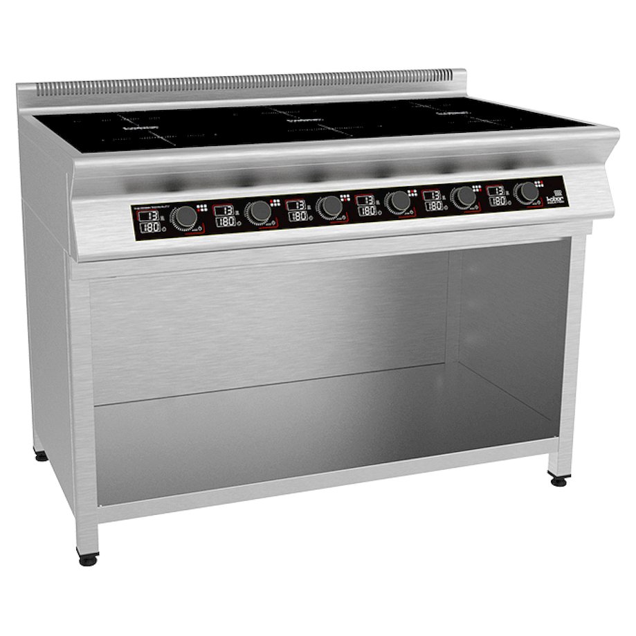 Плита индукционная на полузакрытой подставке 6 конфорок КОБОР I7-6S1 - Автономно управляемые поверхности позволяют одновременно готовить до 6 блюд. На полке под плитой можно разместить котлы, кастрюли и прочие габаритные кухонные принадлежности. Благодаря современному элегантному дизайну – является не только незаменимой помощницей на кухне, но и ее стильным украшением.