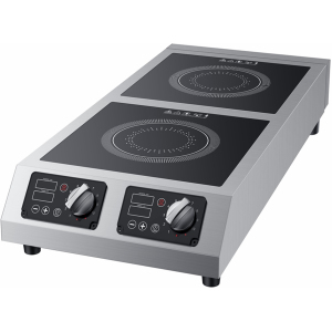 Плита индукционная настольная Enigma SL-35-KPP3-R продольного исполнения, с электронной панелью управления, LED дисплеями, 2 регуляторами с 10 уровнями мощности нагрева, таймером, корпусом из нержавеющей стали 201 - альтернатива классическим электрическим и газовым плитам, позволяющая значительно сократить энергозатраты и улучшить микроклимат в производственном помещении.