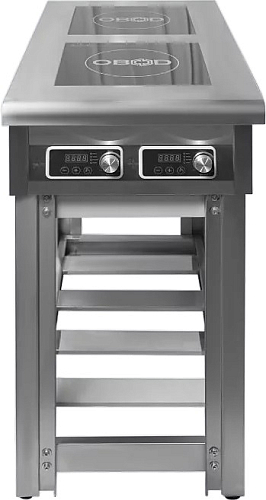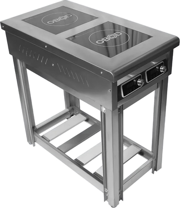 Плита индукционная OBOD ПЭИ-2 настольная с 2 стеклокерамическими поверхностями, круглыми конфорками диаметром 300мм, мощностью 2х3500Вт оснащена защитой от перегрева, корпусом из нержавеющей стали. Рабочая температура: +80...+280С. Модель оснащена цифровой панелью управления, 2 активными джойстиками, 6 уровнями мощности. Две отдельные конфорки могут быть настроены независимо для точного контроля температуры и приготовления различных блюд одновременно. Каждая конфорка оснащена 2-мя кулерами охлаждения, что предотвращает перегрев конфорки. Для индукционной плиты подходит только специльная посуда. Плита работает по принципу вихревых токов, что позволяет максимально экономить электроэнергию, а также в разы ускоряет процесс готовки. Благодаря инновационной технологии, эта плита мгновенно нагревает посуду, существенно сокращая время приготовления. Плита также обеспечивают высокую степень безопасности. Поверхность плиты не нагревается, поэтому риск обжечься или случайно включить плиту минимален. Разборный стенд оснащён полкой-решёткой.