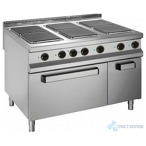 Механическая панель управления установлена на передней панели оборудования, а также оснащена индикаторами нагрева для каждой конфорки. ТЭНы в жарочном шкафу расположены вверху и внизу рабочей камеры, что позволяет добиться равномерного распределения температуры. Корпус оборудования изготовлен из нержавеющей стали марки AISI 304.