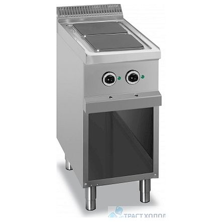 Напольная электрическая плита MBM MG7E2AP77Q используется в небольших кафе, закусочных, барах и других заведениях общественного питания для приготовления первых, вторых и третьих блюд. Оборудование имеет 2 квадратные конфорки размером 220х220 мм и аналоговую панель управления.