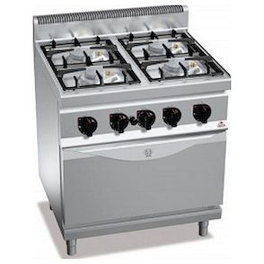 Плита газовая Berto's G7F4+FE используется в ресторанах, кафе и других заведениях общественного питания для приготовления первых, вторых и третьих блюд. Духовой шкаф рассчитан на 4 гастроемкости GN 2/1. Модель оснащена линейным индикатором и индикатором достижения нужной температуры.
