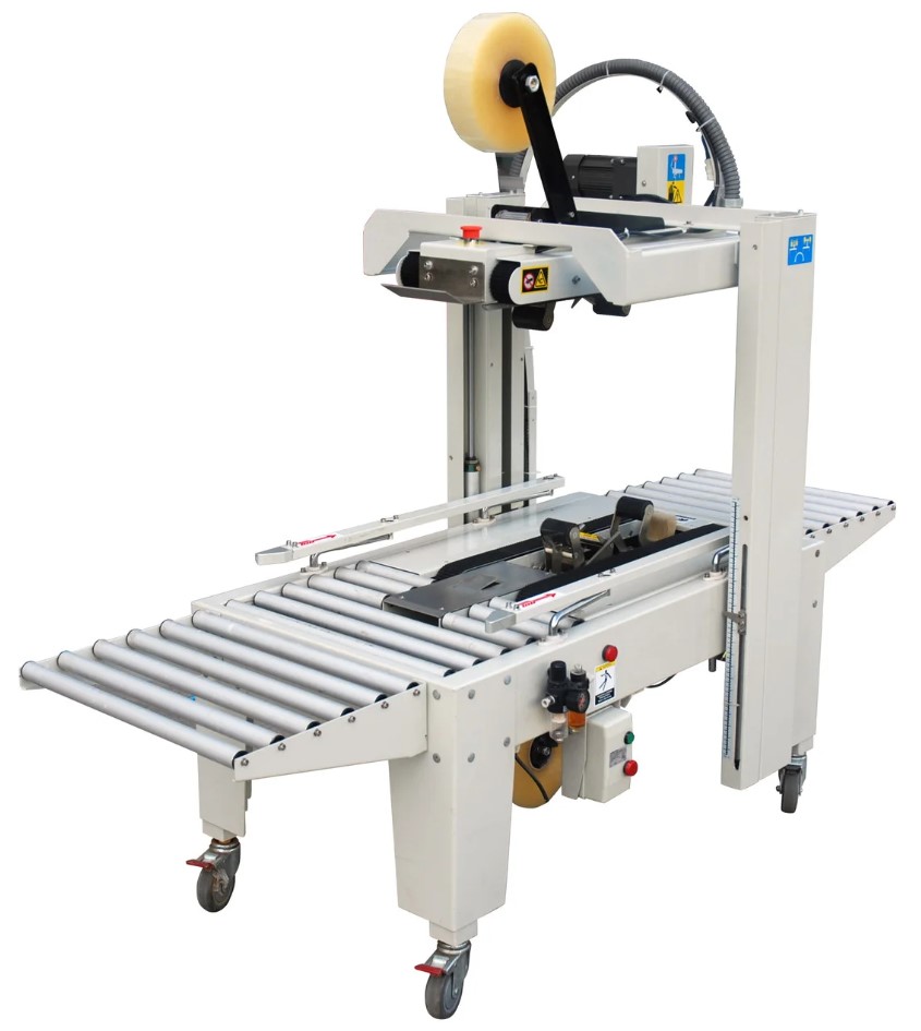 Пневматическая машина для заклейки картонных коробок Hualian Machinery FXJ-5050Q спроектирован для заклейки с двух сторон. Предусмотрена возможность эксплуатации этой модели в качестве отдельного устройства или в составе технологической линии. Благодаря специальной конструкции модель способна подстраиваться под заданные размеры. Устройство с помощью протяжных ремней продвигает коробки и обрезает клейкую ленту. Натяжение как ремней, так и скотча регулируется автоматически и зависит от типа применяемого картона.