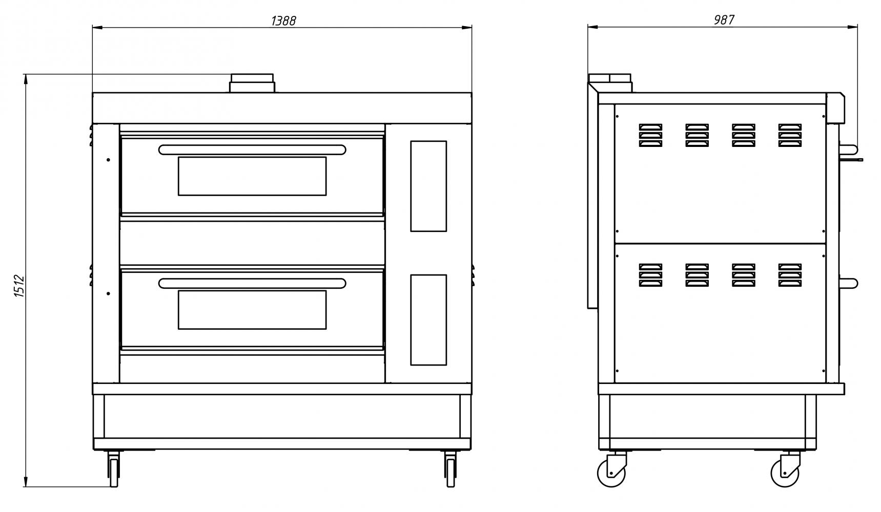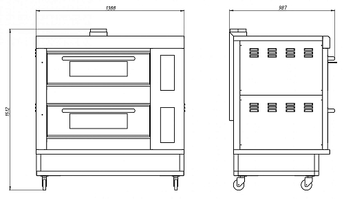 Устанавливается на подставке с колёсными опорами со стопором. Отличается увеличенным размером камеры, выполненной из нержавеющей стали. Камеры оборудованы дверьми с большим двойным закалённым стеклом и возвратным пружинным механизмом закрытия. Работает на природном и баллоном газе.