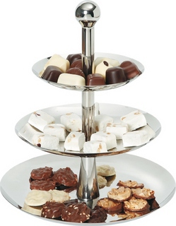 Подставка трехярусная HENDI 429914 прекрасно подходит для презентации кондитерских изделий.
