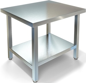 Каркас выполнен из нержавеющей трубы AISI 430, столешница - из нержавеющей стали AISI 430.