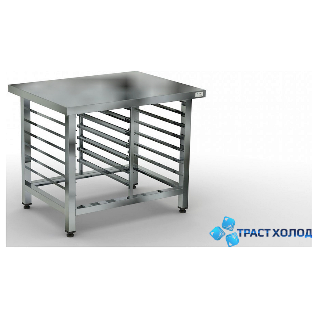 Подставка Кобор ПП-80/60 имеет направляющие, позволяющие разместить в них гастроемкости либо противни, в зависимости от модели подставки. Изделие изготовлено из нержавеющей стали. Каркас изготовлен из нержавеющей квадратной трубы 40х40 мм, что придает изделию высокую прочность. Ножки имеют регулируемые опоры, позволяющие компенсировать неровности пола.