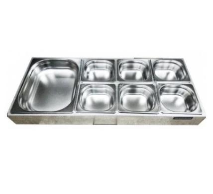 Подставка KAYMAN RIGA ПГЗ-824/351 используется для хранения и удобного размещения гастроемкостей, а также быстрого доступа к ингредиентам, связанными с изготовлением пиццы, шаурмы, хот догов на предприятиях общественного питания и торговли. Изделие выполнено из нержавеющего стали AISI 430 толщиной 0,8 мм.