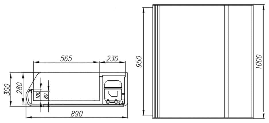 Холодильная витрина для икры и пресервов Полюс А90 SV 1,0-2 (ВХСр-1,0 Арго XL Техно self)