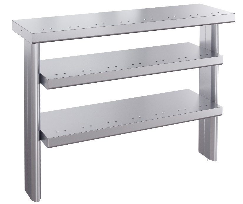Полка 3-х ярусная Atesy Ривьера П-3.1000-02 используется для кратковременного хранения и раздачи первых и вторых блюд, горячих и холодных закусок и напитков, кондитерских изделий, а также для обеспечения клиентов столовыми приборами на предприятиях общественного питания и торговли. Полка выполнено из пищевой нержавеющей стали.