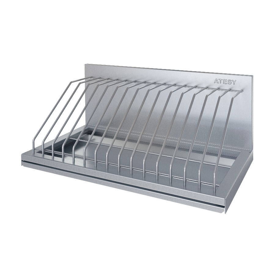 Полка Atesy ПКК-С- 300.350-6-02 используется на предприятиях общественного питания и торговли для хранения и сушки в естественных условиях крышек кастрюль, баков и другой посуды.