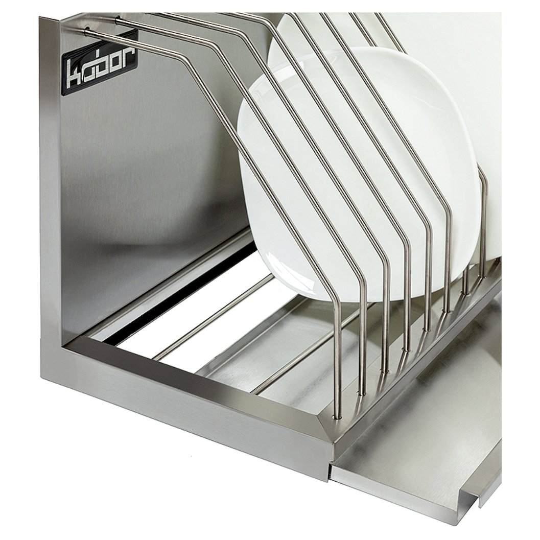 Полка Кобор ПКК-30/35 состоит из широких ячеек, что помогает разместить 7 крышек различных размеров, диаметром от 160 до 500 мм. Внизу полки находится специальный поддон для сбора воды.