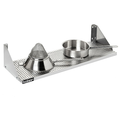 Полка Кобор ПР-150/40 имеет боковые борты, что помогает избежать падения предметов, находящихся на ней. Изделие полностью выполнено из нержавеющей стали, не поддается коррозии.