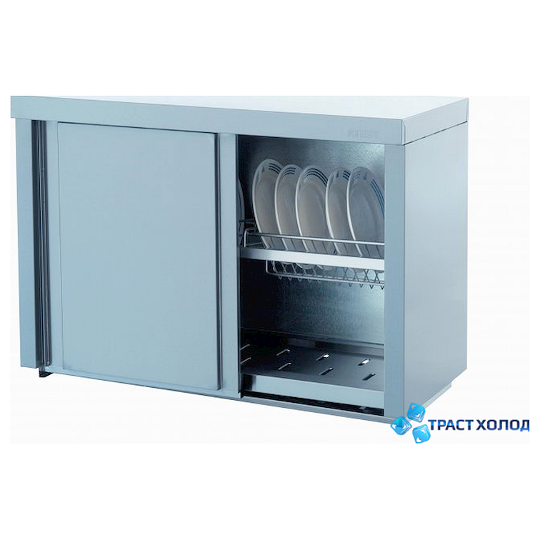 Полка настенная для тарелок закрытая с дверьми купе Атеси ПЗТ-1200 предназначены для хранения и сушки в естественных условиях стандартных суповых и десертных тарелок различных диаметров, а также стаканов. Они используются на предприятиях общественного питания: