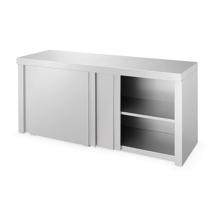 Кухонные настенные закрытые полки Атеси ПЗК-С-1200.420.640-02-К (ПЗК-1200) с дверьми «купе» относятся к профессиональному классу оборудования. Они предназначены для длительного хранения продуктов и инвентаря в закрытом объеме. Двери «купе» позволяют экономить пространство, так как перемещаются на роликах, а не распахиваются, приводя к временному уменьшению пространства кухни. Благодаря роликам достигается бесшумность в работе.