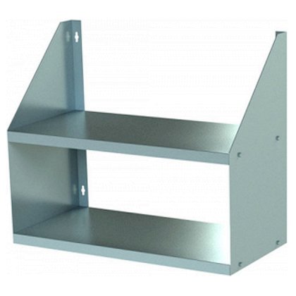 Полка настенная (навесная) открытая сплошная двойная, серии Премиум, с косынками вверх изготовлена из нержавеющей стали 430 толщиной 1мм (уголки крепления) и 0,7мм (полка). Усиление полки (ребро жесткости) изготовлено из оцинкованной стали толщиной 0,5мм. Максимальная равномерно распределенная нагрузка на полку - до 25кг. Фурнитура для крепления полки к стене в комплект не входит.