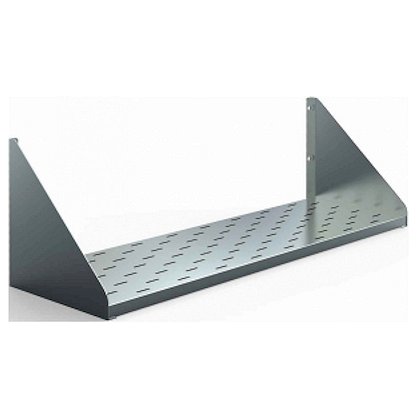 Полка настенная (навесная) открытая, одноярусная, перфорированная, сборно-разборная, с косынками вверх, изготовлена из нержавеющей стали AISI 430 толщиной: 1мм (уголки крепления) и 0,7мм (полка). Полка используется для хранения непортящихся продуктов и полуфабрикатов, а также кухонной посуды: сковородок, тарелок, кружек и прочего на предприятиях общественного питания. Поставляется в разборе. Максимальная равномерно распределенная нагрузка на полку - до 25кг. Фурнитура для крепления полки к стене в комплект не входит.