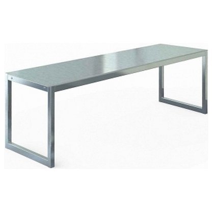 Полка настольная открытая П-образная с 1 сплошным уровнем из нержавеющей стали AISI 430 толщиной 0.7 мм. Усилитель полки - нержавеющая сталь AISI 430 толщиной 0.7 мм. Стойки - профильная труба квадратного сечения 20х20х1.2 мм из нержавеющей стали AISI 430. Уголок крепления из нержавеющей стали AISI 430 толщиной 1.5 мм.