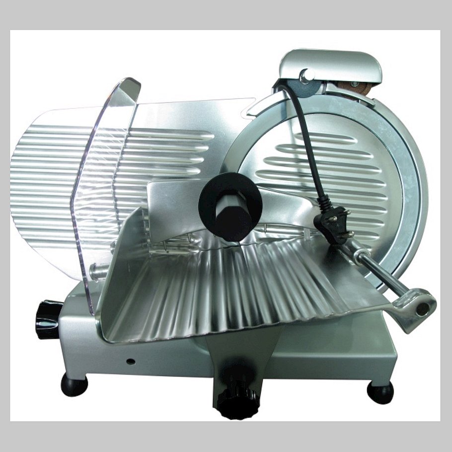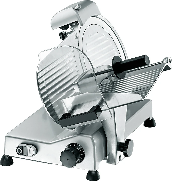 Оборудование предназначено для гастрономической нарезки продуктов на ровные, эстетичные ломтики заданной толщины от 0,2 до 10 мм. Применяется для нарезки мясных и рыбных деликатесов, колбас, сыров, овощей и фруктов. Может использоваться как на предприятиях торговли и общественного питания, так и в быту. Диаметр лезвия в данной модели составляет 220 мм.