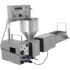 • Пончиковый аппарат оснащен 2 плунжерными парами размером 23мм, а так же набором набор лопаток и вкладышей.
