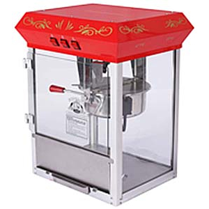Попкорн аппарат Enigma RC-6097 настольный, без тележки, имеет котёл из нержавеющей стали, боковые панели из закалённого стекла, Объём котла - 8 унций. Производительность - до 4,8кг/ч (170 порций по 28г). Разовая загрузка - 230г зерна для приготовления солёного попкорна или 192г - для сладкого попкорна. Оптимально работать с загрузкой на 6 унций, т.к. при большей закладке много нераскрытых зерен выталкивается из котла. Сладкий попкорн на нем готовить можно, т.к. в аппарате есть три кнопки включения, поэтому можно выключать нагрев котла в момент начала активного раскрытия попкорна.