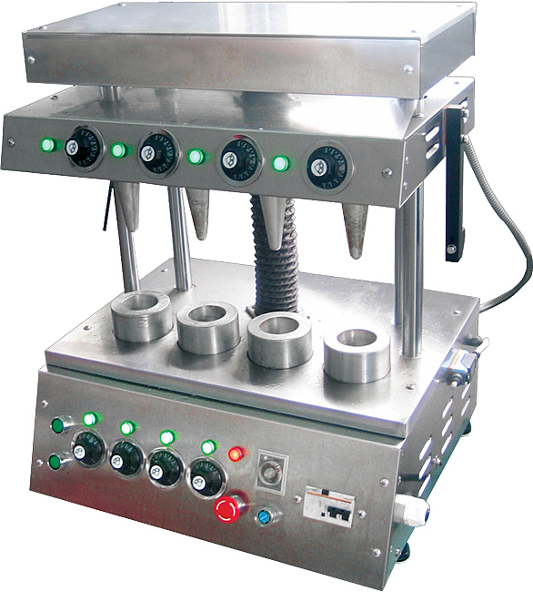 Пресс для коно-пиццы Kocateq PAC4A позволяет производить формование и пропекание до 4-х конусов коно-пиццы одновременно. Каждая пара матриц пресса коно-пиццы снабжена индивидуальными аналоговыми термостатами для верхних и нижних матриц. Аналоговый таймер позволяет с точностью до 1 секунды задавать время выпекания. Цикл прессования-пропекания-разведения форм происходит автоматически и не требует дополнительного вмешательства со стороны оператора.
