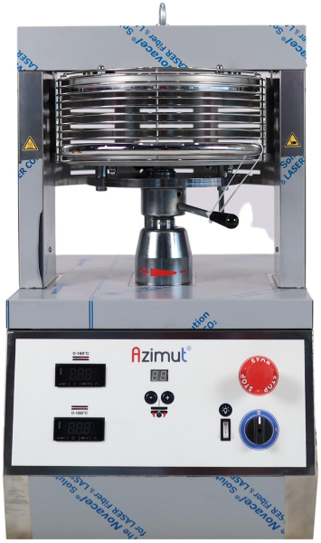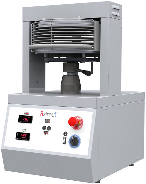 Пресс для пиццы Azimut FORMA 33, формирующий борт, с автоматическим прессованием оснащен таймером остановки, хромированными рабочими поверхностями (фиксированная верхняя и подвижная нижняя), съёмной защитной решёткой. Рабочая температура: +170С. Диаметр поверхности - 330мм. Производительность - 400шт./ч. Принцип работы пицца-пресса основан на сжатии шарика теста весом от 130г до 250г между двумя круглыми нагревающимися поверхностями. Получившаяся лепешка во избежание последующего стягивания тут же подпекается этими поверхностями. Благодаря функции подпекания, на поверхности краста образуется корочка, которая способствует получению более пышной основы, а также препятствует проникновению влаги из начинки. Защитная решётка из металлической проволоки обеспечивает максимальную защиту. Двойное освещение увеличивает внутреннюю видимость. В прессе предусмотрена функция корректировки толщины заготовок с помощью ручки регулятора, расположенной под нижним диском. Продолжительность прессования и температура варьируются в зависимости от температуры теста (рекомендуется в диапазоне от +6°C до +20°C). Работа пресса блокируется при открытой решётке. Корпус изготовлен из нержавеющей стали.